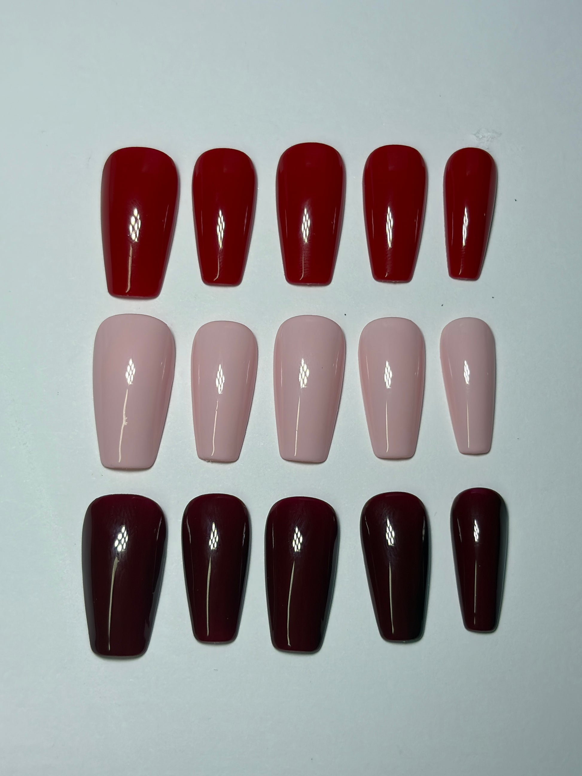 Kit de press-on pour le quotidien : un set nude, un set rouge et un set bordeaux.